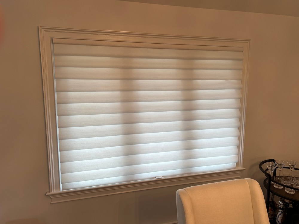These shades not only enhance the aesthetic appeal of the room but also offer practical benefits, such as energy efficiency, improved light control, and easy maintenance. The soft folds create a layered, textured look that adds depth and elegance to the windows, while the cordless system ensures safety for children and pets. Carefully measured and professionally installed, each shade fits perfectly within the window frame, providing a clean, tailored appearance. The Cascade pattern and crisp White color were chosen to complement the overall décor, making the space feel brighter, more welcoming, and thoughtfully designed for both style, comfort, and lasting functionality.
