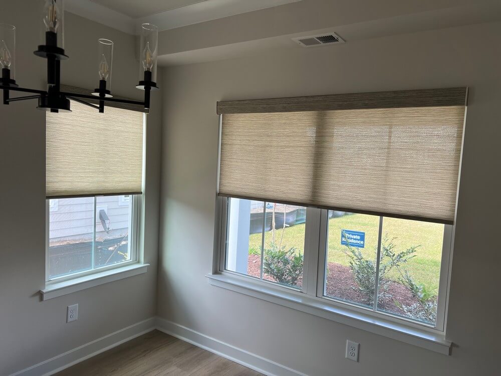These Hunter Douglas designer roller shades were selected to enhance both comfort and visual appeal while maintaining a clean, modern aesthetic throughout the space. The light-filtering fabric allows soft, natural daylight to enter while still providing privacy, making the rooms feel bright without harsh glare. The neutral Swiss Cream color complements the existing décor and architectural details, creating a cohesive and polished look. The LiteRise cordless system offers smooth, effortless operation and a safer option for homes with children or pets. By mounting the shades inside the window openings and on doors, the installation maintains a streamlined appearance while maximizing functionality. This project highlights attention to detail, precise measurements, and professional installation. Completed in North Myrtle Beach, the finished result delivers both practical light control and long-lasting style, perfectly suited for coastal living and everyday comfort.